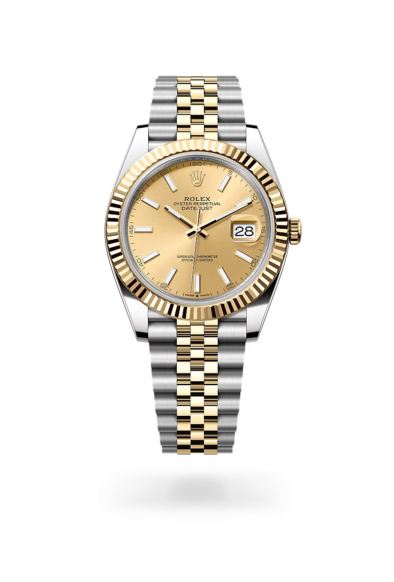 The Rolex fluted bezel is a mark of distinction. Originally, the fluting of the Oyster bezel had a functional purpose: it served to screw the bezel onto the case helping to ensure the waterproofness of the watch. It was therefore identical to the fluting on the case back, which was also screwed onto the case for waterproofness, using specific Rolex tools. Over time, the fluting became an aesthetic element, a genuine Rolex signature feature. Today the fluted bezel is a mark of distinction, in gold on this Datejust 41.