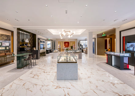 Residing in the new luxury wing of the landmark Southdale Center in Edina, the Watches of Switzerland showroom is a 5,400-square-foot multi-brand luxury destination that hosts a dedicated Rolex corner, a Cartier shop-in-shop along with many prestigious horology brands. The modern, fresh interior features decorative bronze finishes, sculpted wood fixtures, and a central hospitality bar that offers a truly elevated and vibrant welcoming experience.