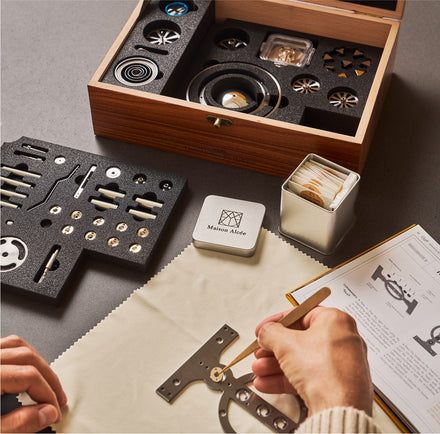 Maison Alcée is not a watch brand in the traditional sense. Founded by French engineers Alcée and Benoît Montfort, the brand focuses on teaching people about watchmaking in a tactile, immersive, and lasting way. Rather than starting with a finished product, Maison Alcée offers an experience via a kit, with 233 finely crafted components, 90% of which are made in the Jura, that you assemble yourself, slowly piecing together a mechanical clock that runs, ticks, and keeps time. It’s a clock and a gateway to watchmaking all in one box.