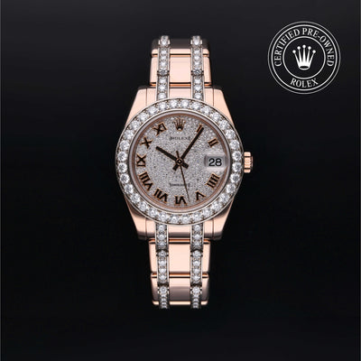 The Oyster Perpetual Pearlmaster is synonymous with elegance and finesse. Made exclusively from precious metals, it is adorned with diamonds, including a fully paved dial, and features gentle, graceful lines, delivering a vivacious blend of watchmaking expertise and artful gem-setting.